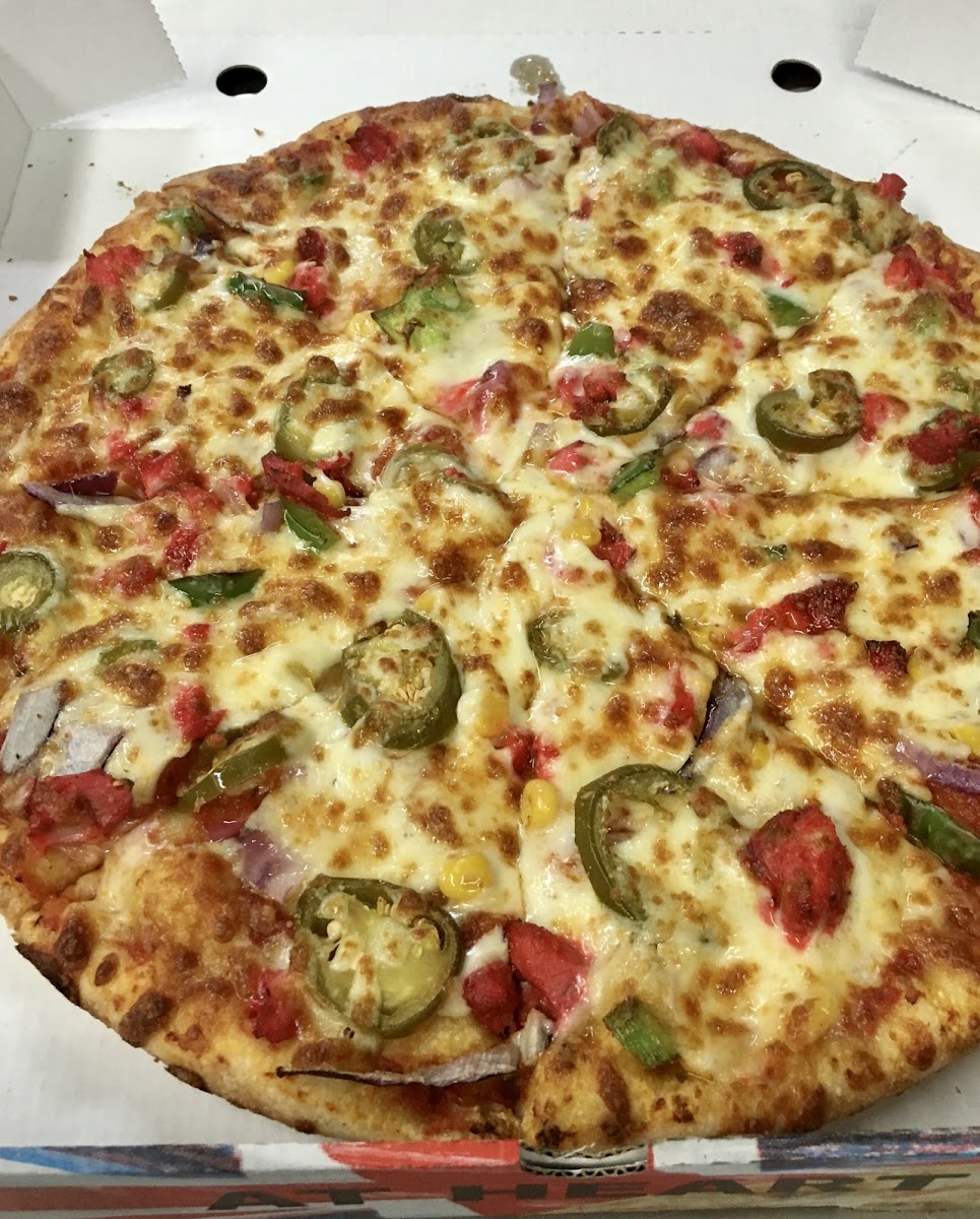 Green pepper, green chilli, mushroom, onion & sweetcorn with our secret pizza sauce & cheese.